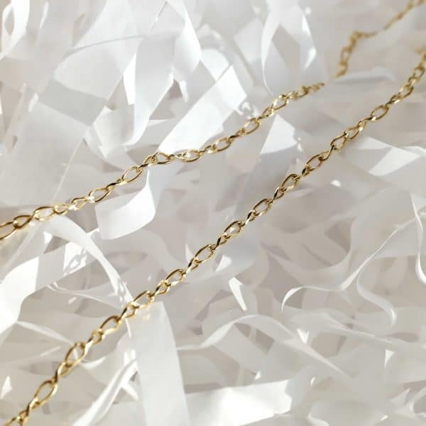 This exquisite necklace features a wavy link design, an elegant weave that adds movement and brilliance to the jewelry’s surface. Its sinuous shape reflects light uniquely, creating a refined and lightweight effect.