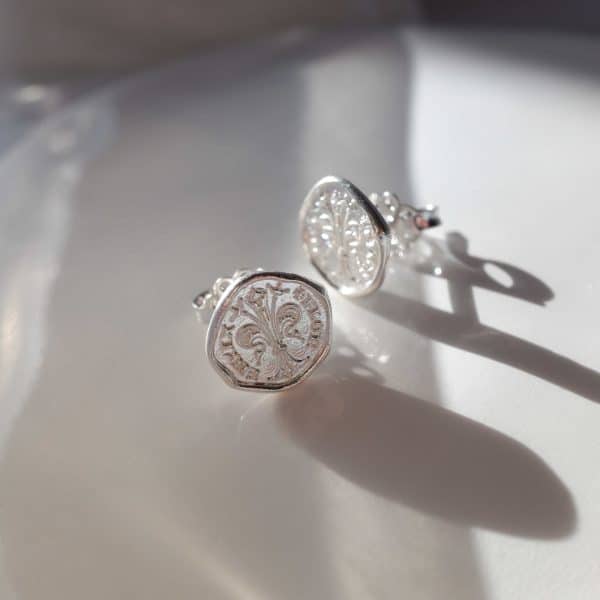 Questi eleganti orecchini a lobo reinterpretano il leggendario Fiorino Fiorentino in una chiave contemporanea, fondendo tradizione e design moderno. Realizzati inargento rodiato e argento brunito, ogni dettaglio racconta il prestigio e la storia di una delle monete più iconiche della Firenze medievale.